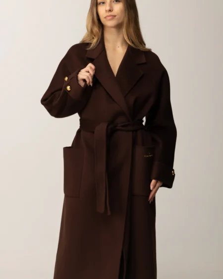 Marca: Elisabetta FranchiAbrigo Largo Elisabetta Franchi Café con Cinturón y Bolsillos $1.390.000