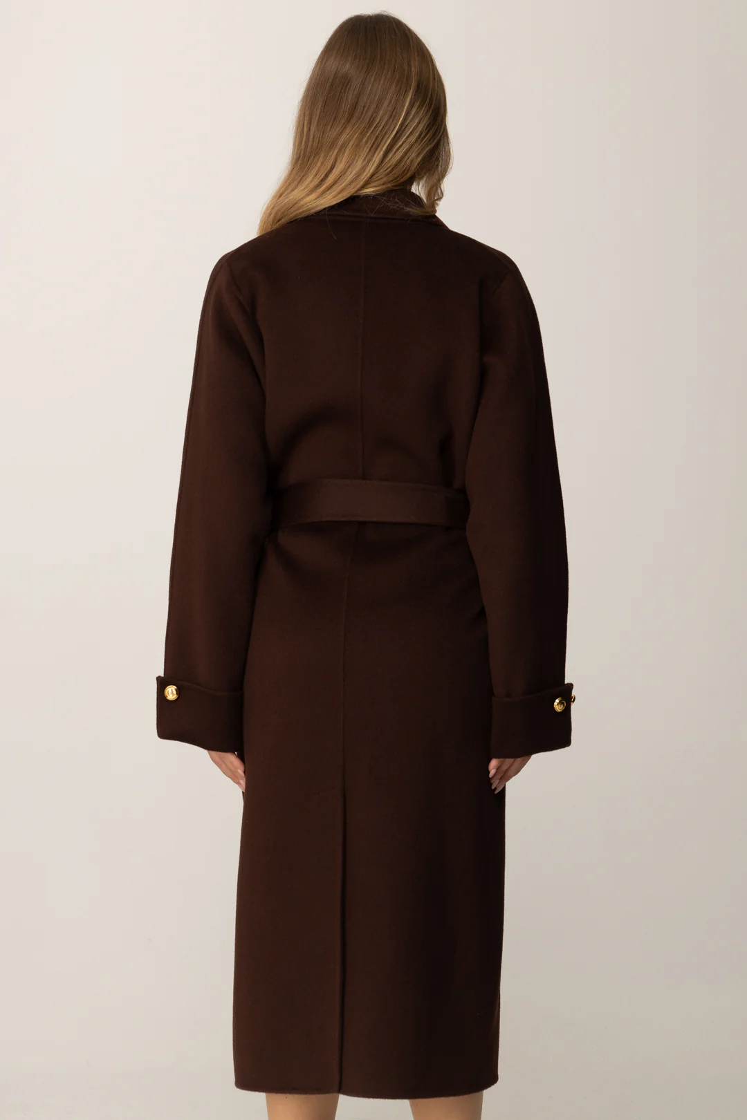 Abrigo Largo Elisabetta Franchi Café con Cinturón y Bolsillos