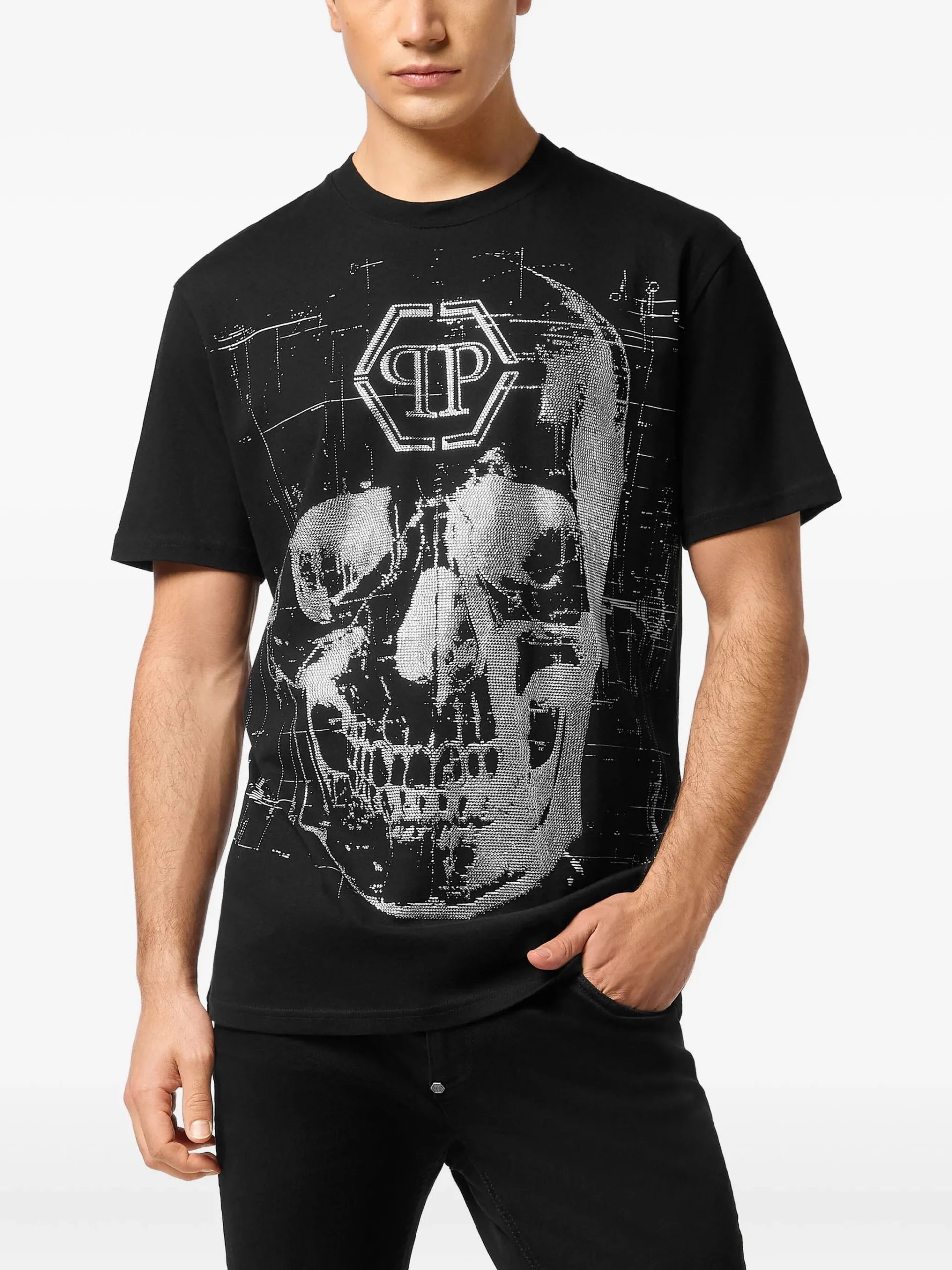 Camiseta Philipp Plein Skull Strass Negra