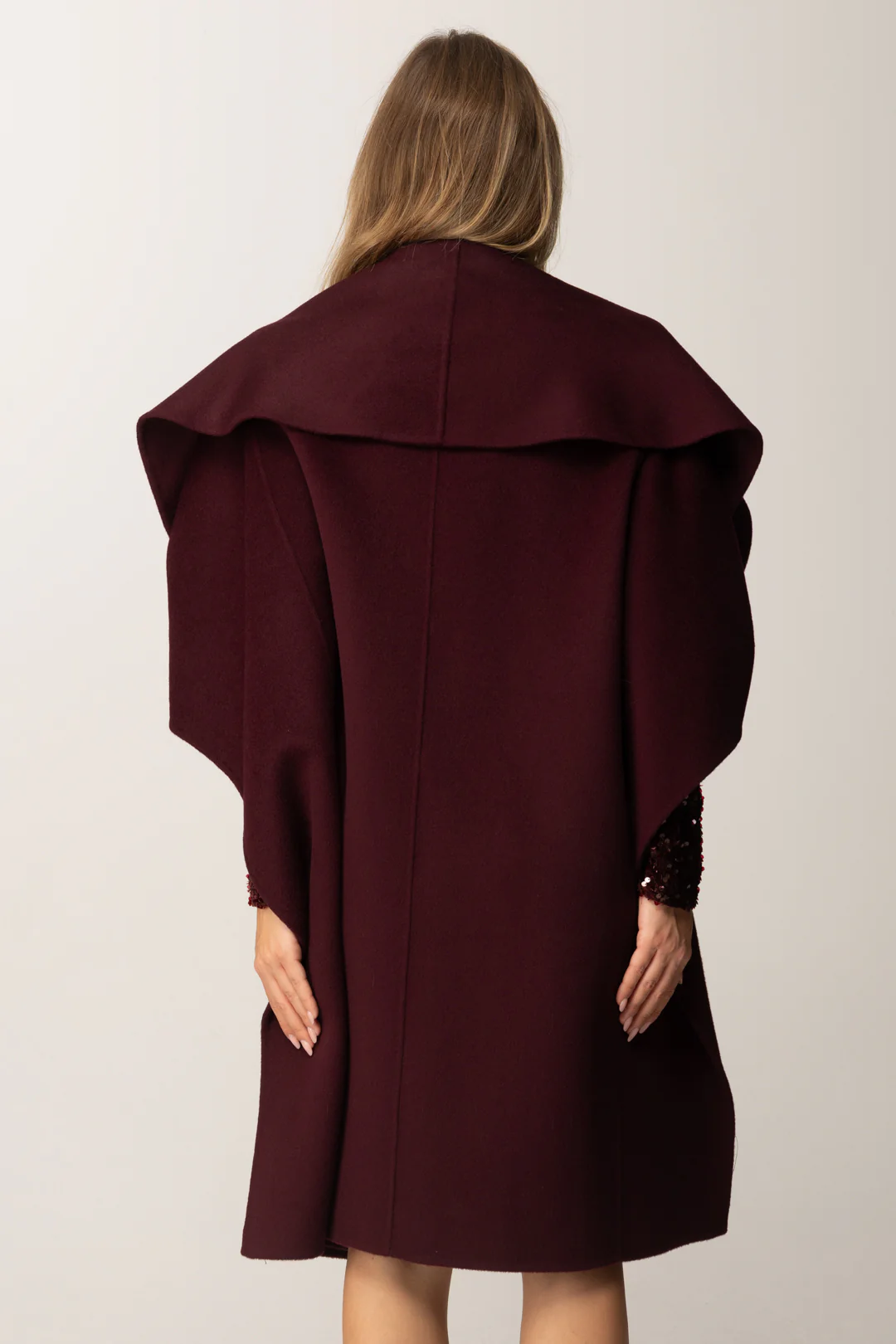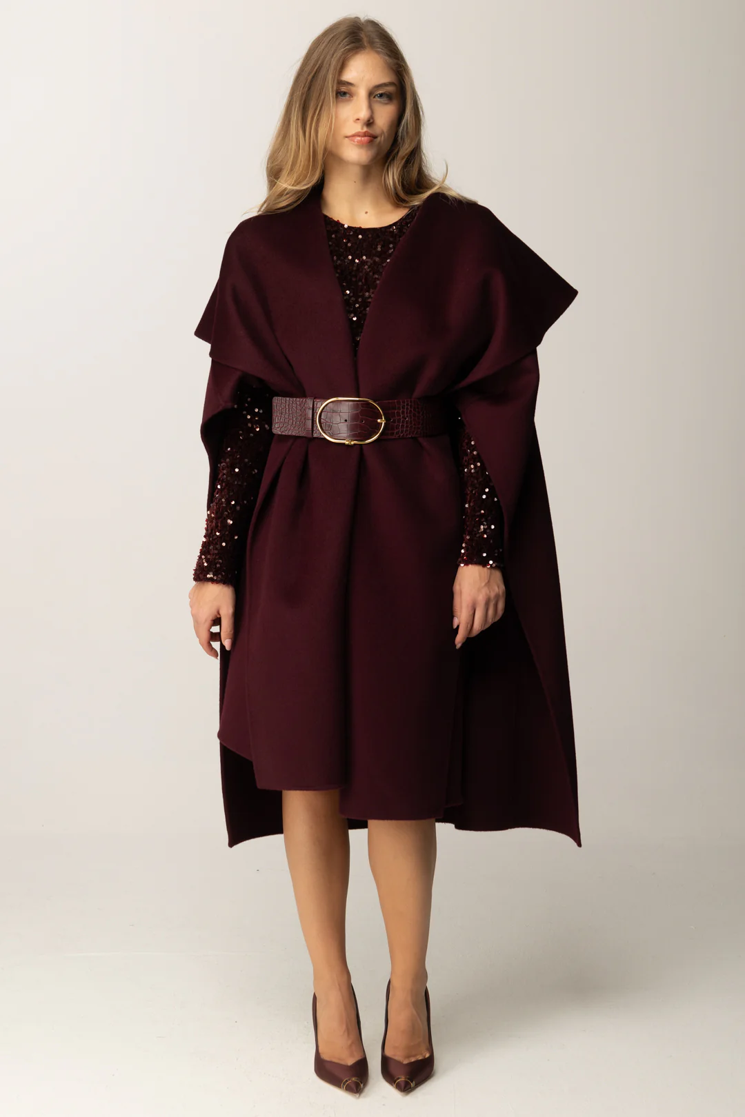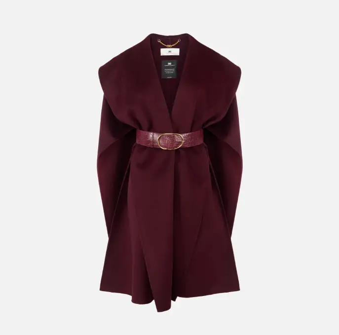 Capa Elisabetta Franchi Burdeo con Cinturón y Diseño Envolvente