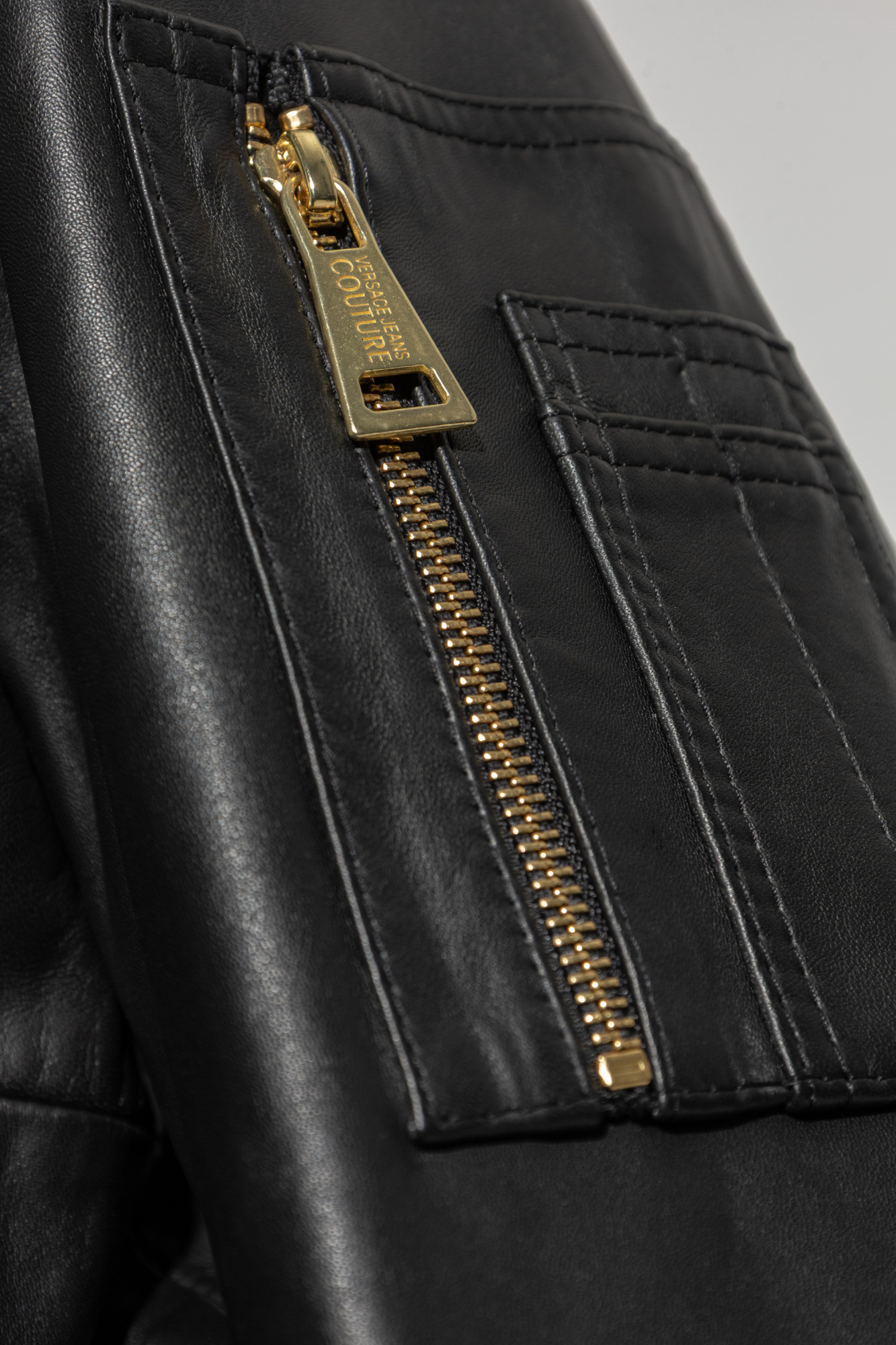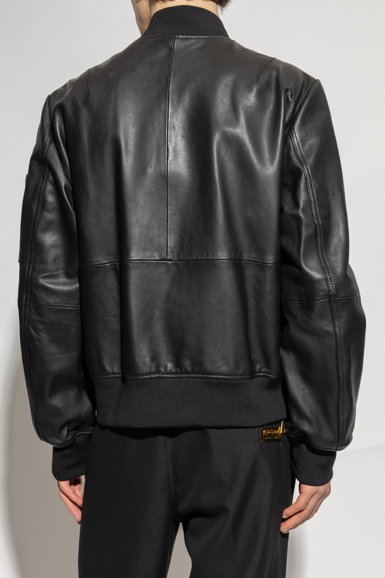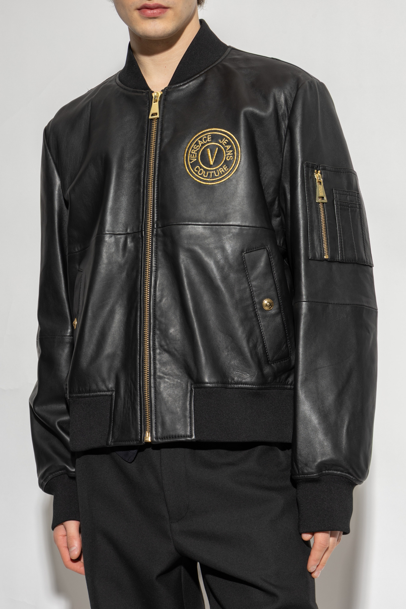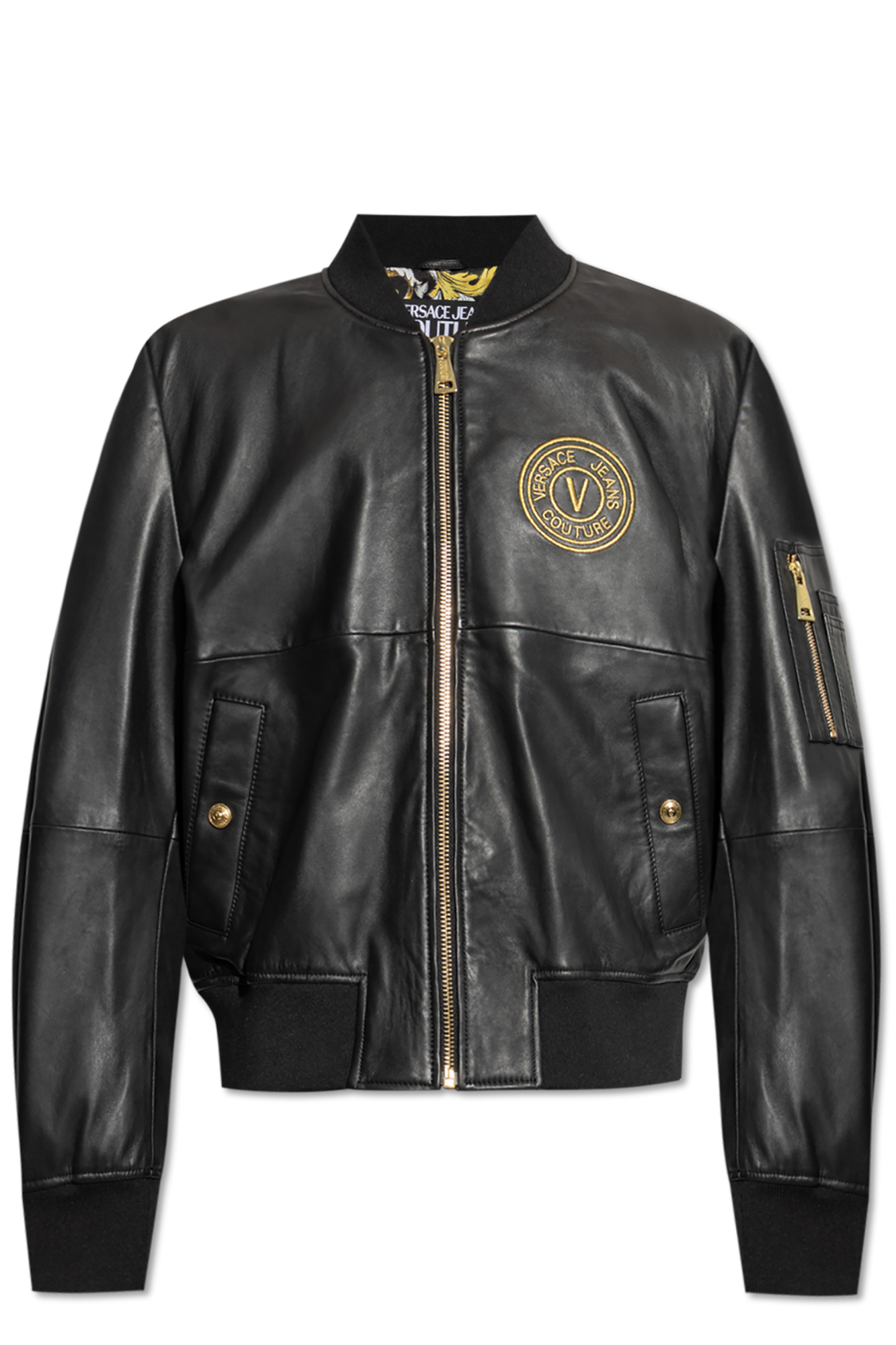 Chaqueta bomber en cuero ecologico negro con detalles en dorado y logo circular en el pecho. Un clásico de lujo atemporal que aporta carácter y exclusividad a cualquier outfit.