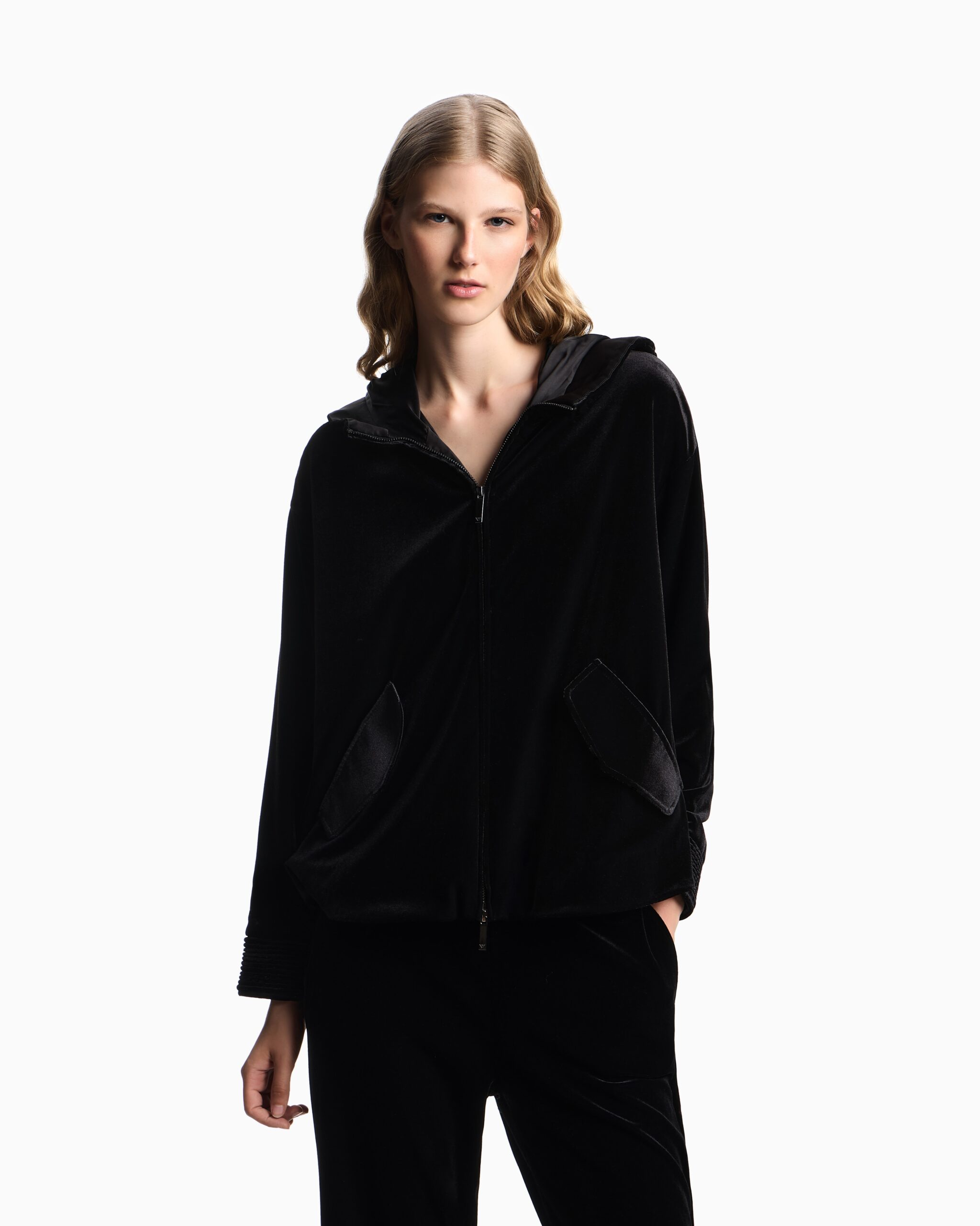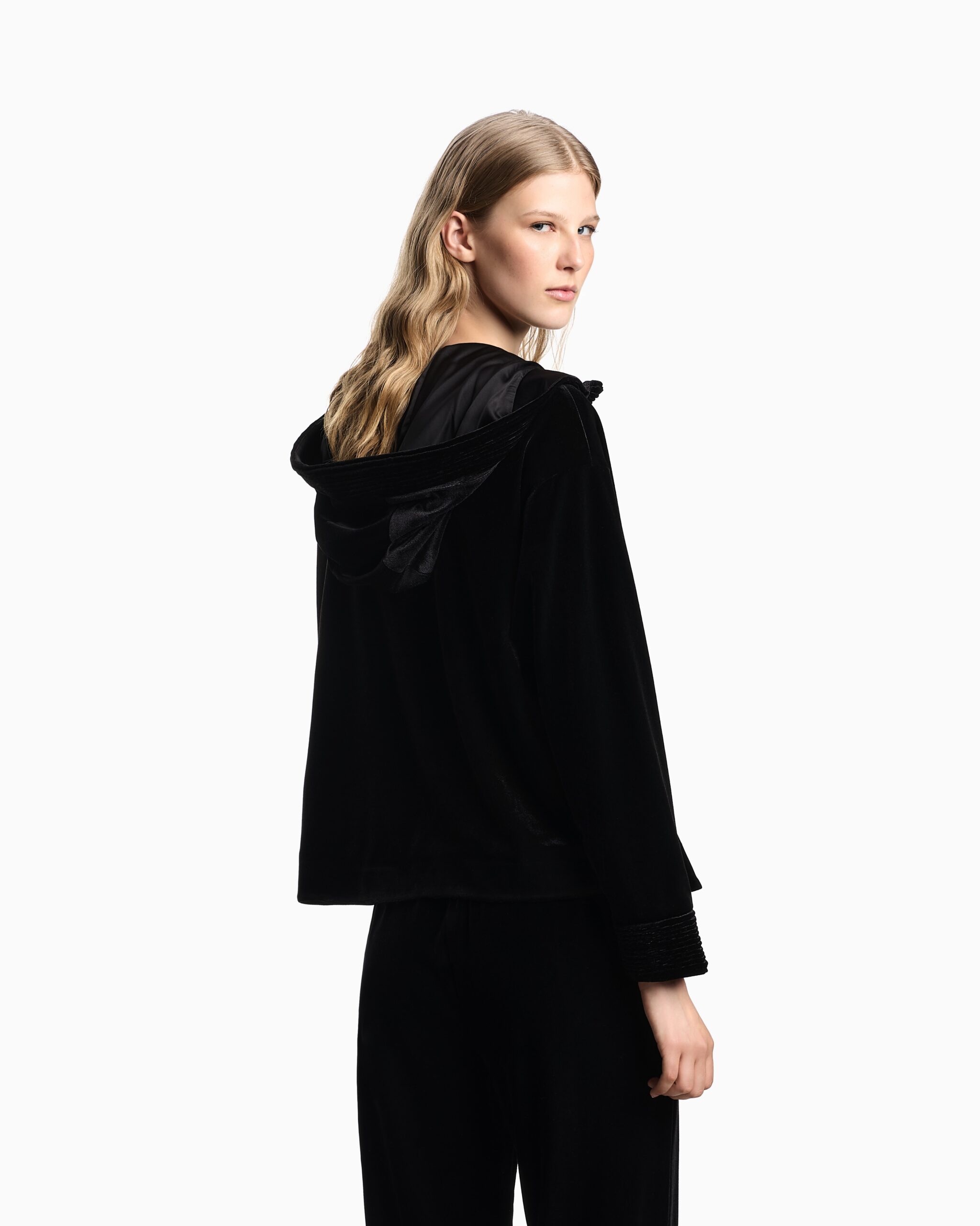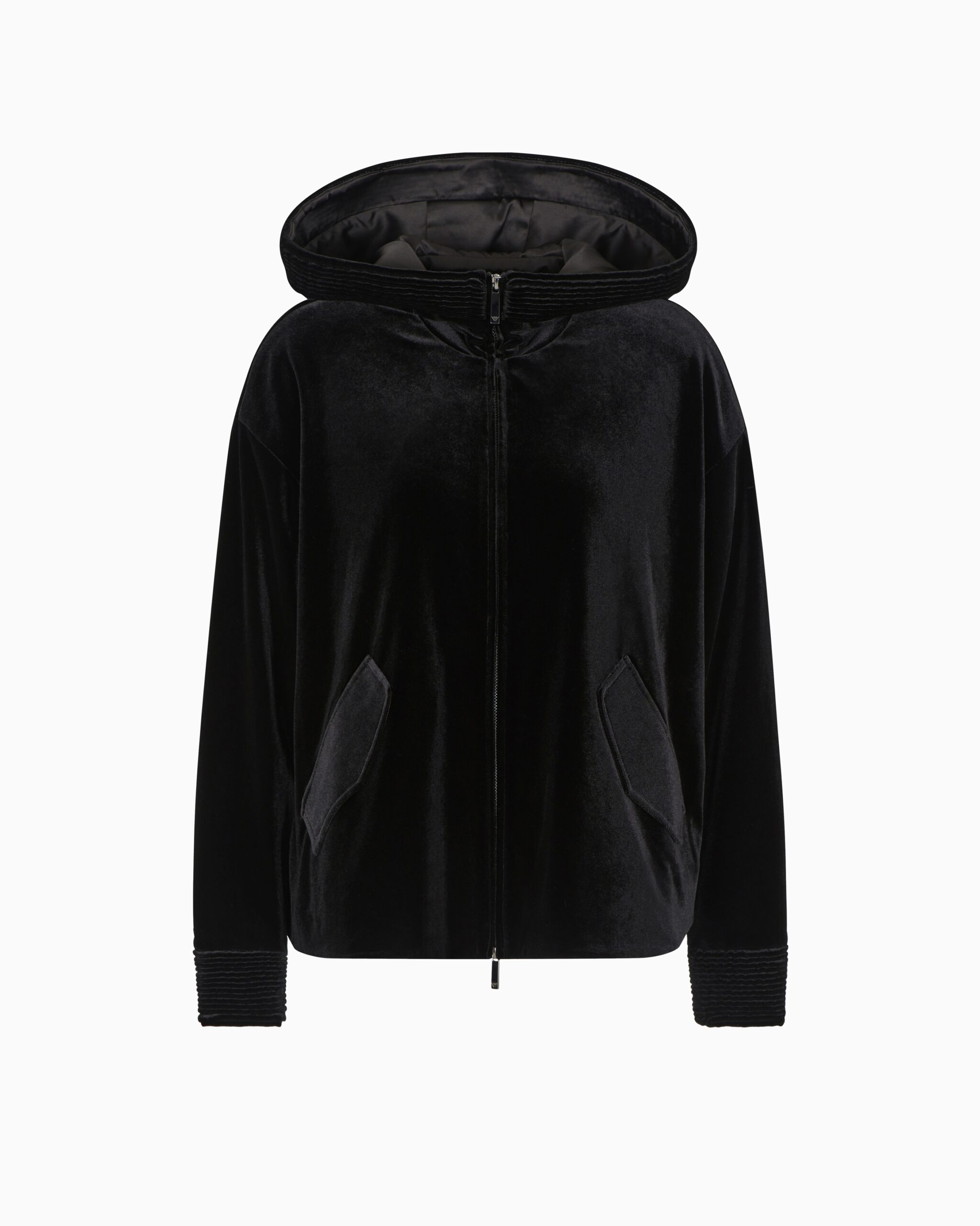 Chaqueta Negra Emporio Armani Mujer Terciopelo Capucha Casual Chic