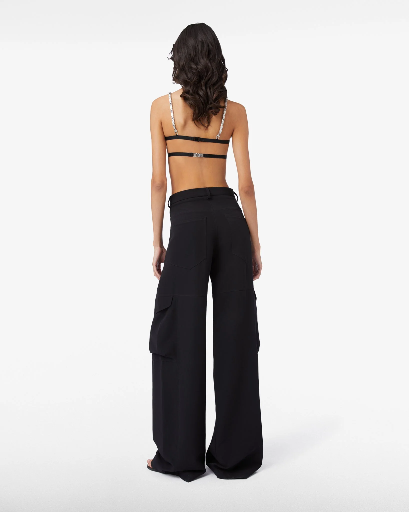 Pantalón cargo negro de corte ancho con bolsillos laterales y tiro alto. Versátil, cómodo y con estilo urbano.