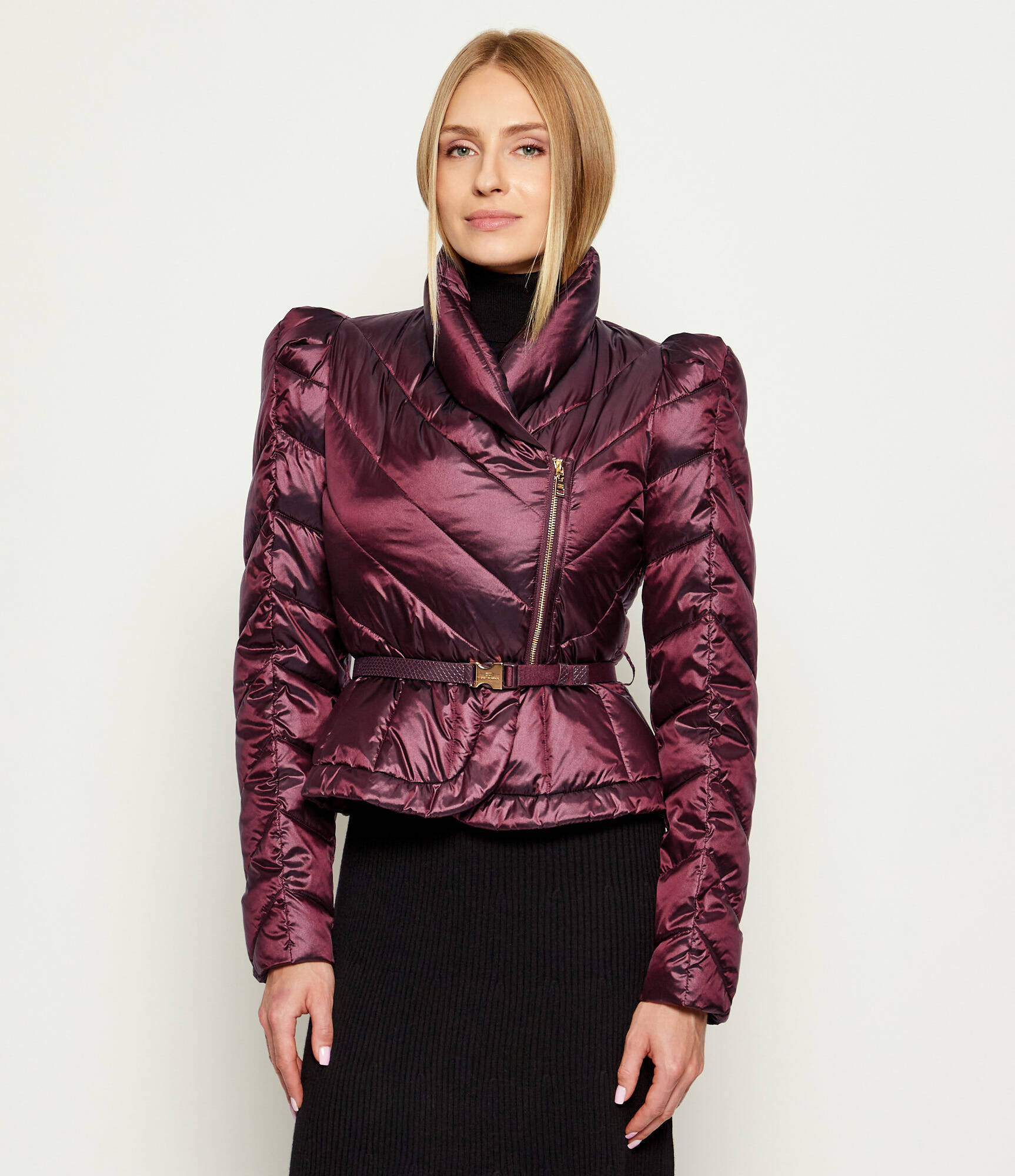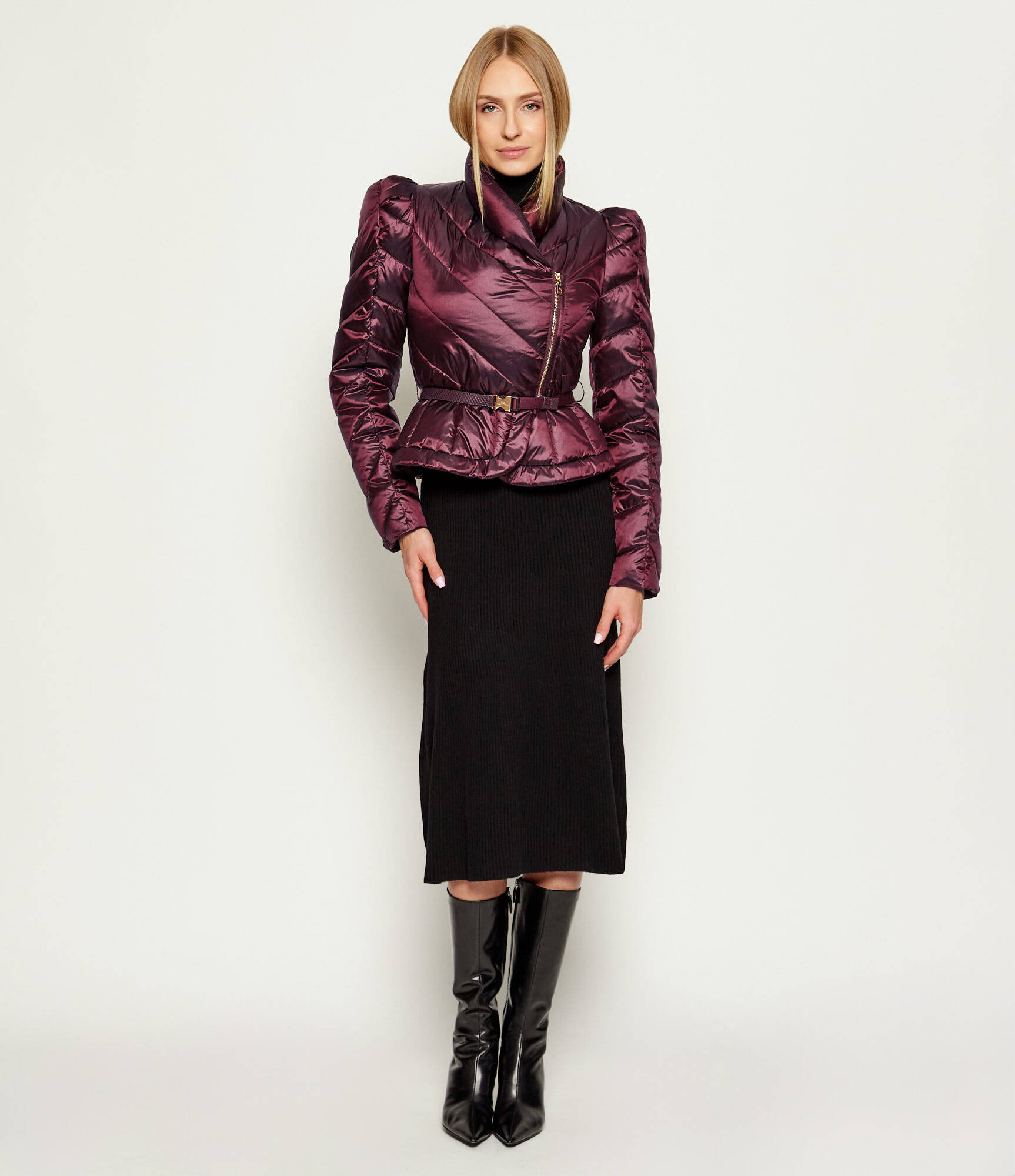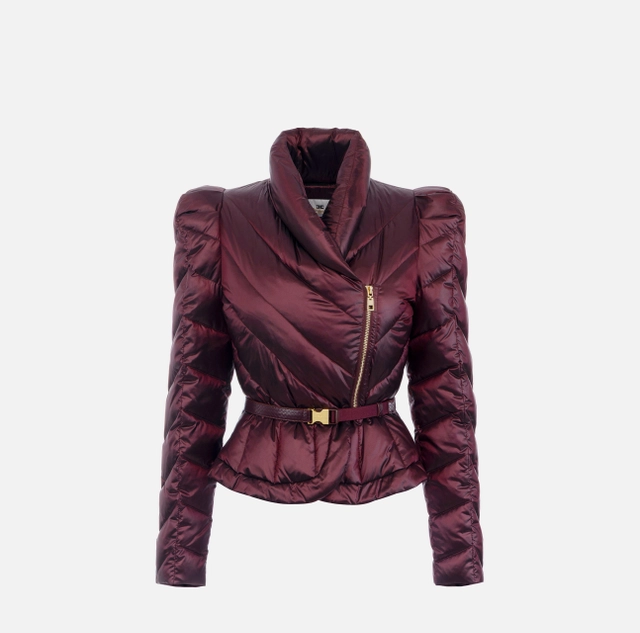 Parka Elisabetta Franchi Burdeo Acolchada Entallada con Cinturón
