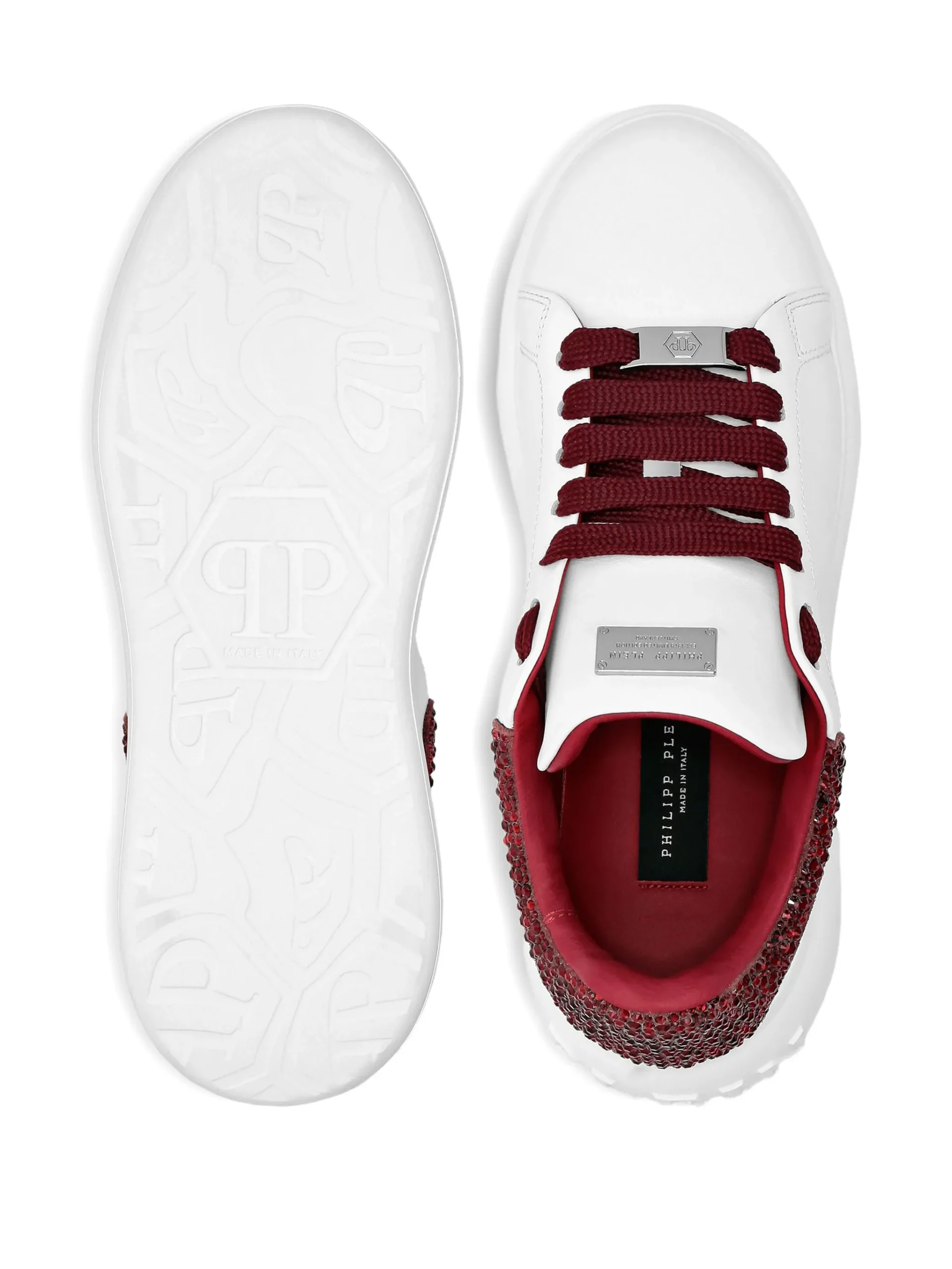 Philipp Plein Zapatillas Crystal Blancas Burdeo Mujer