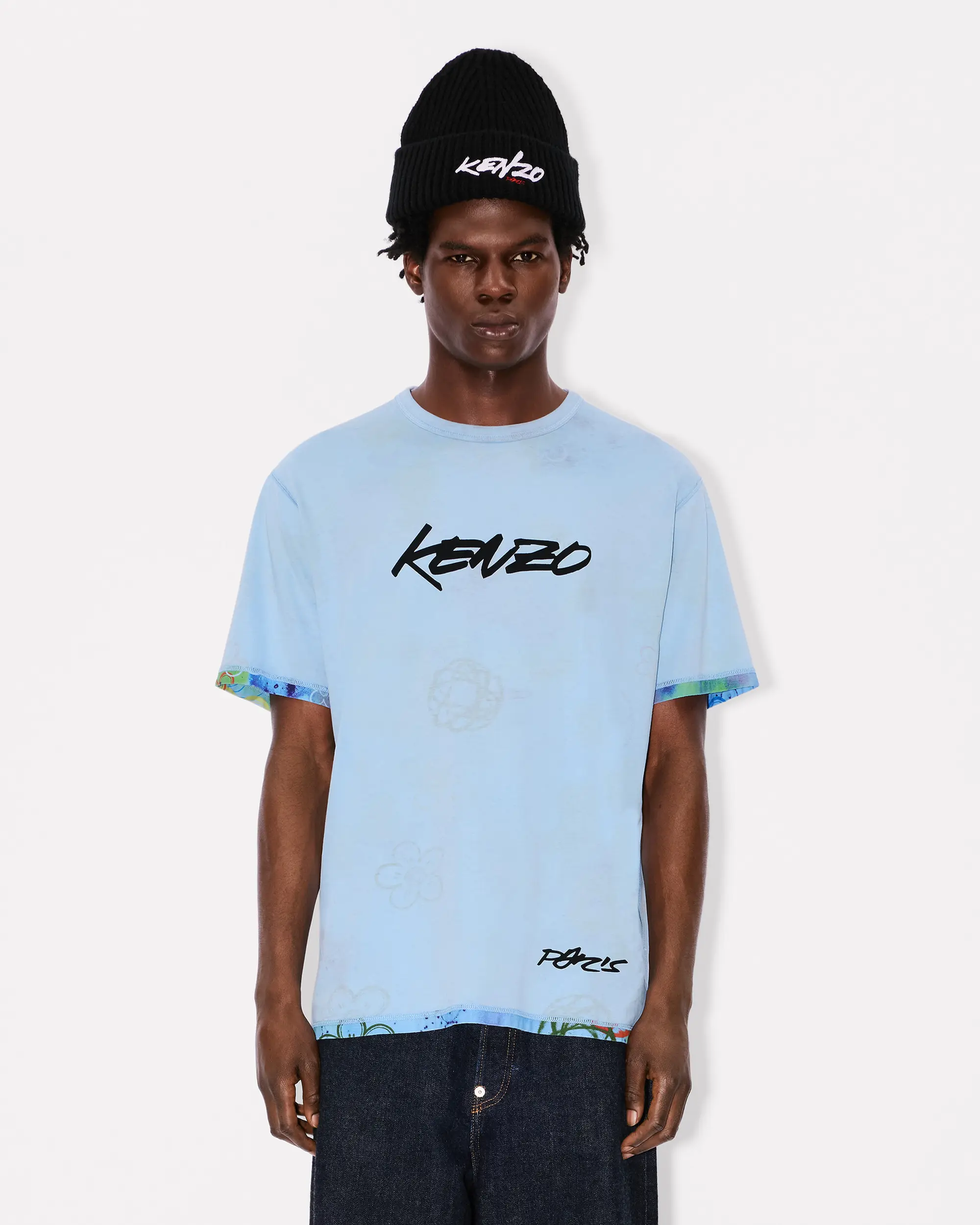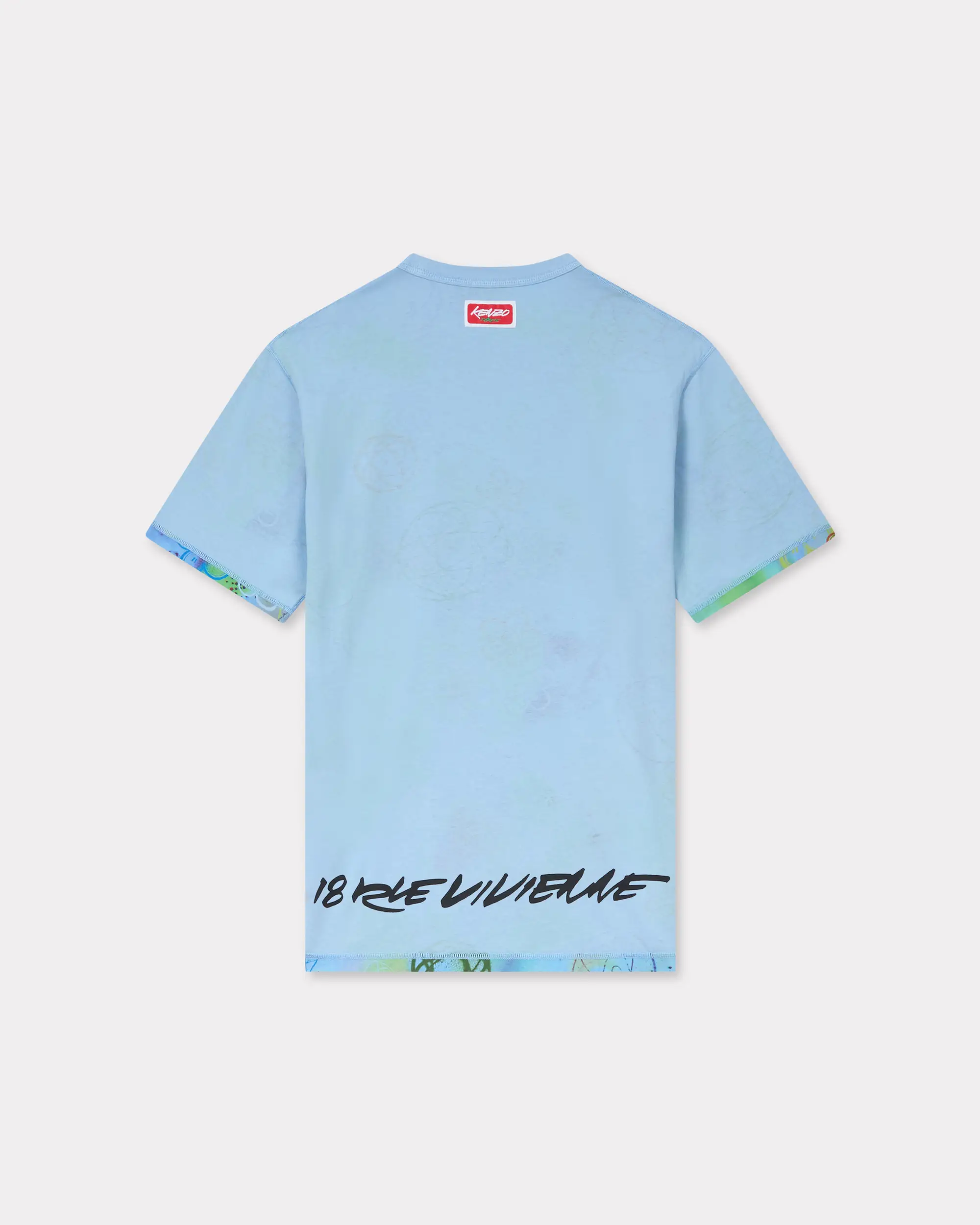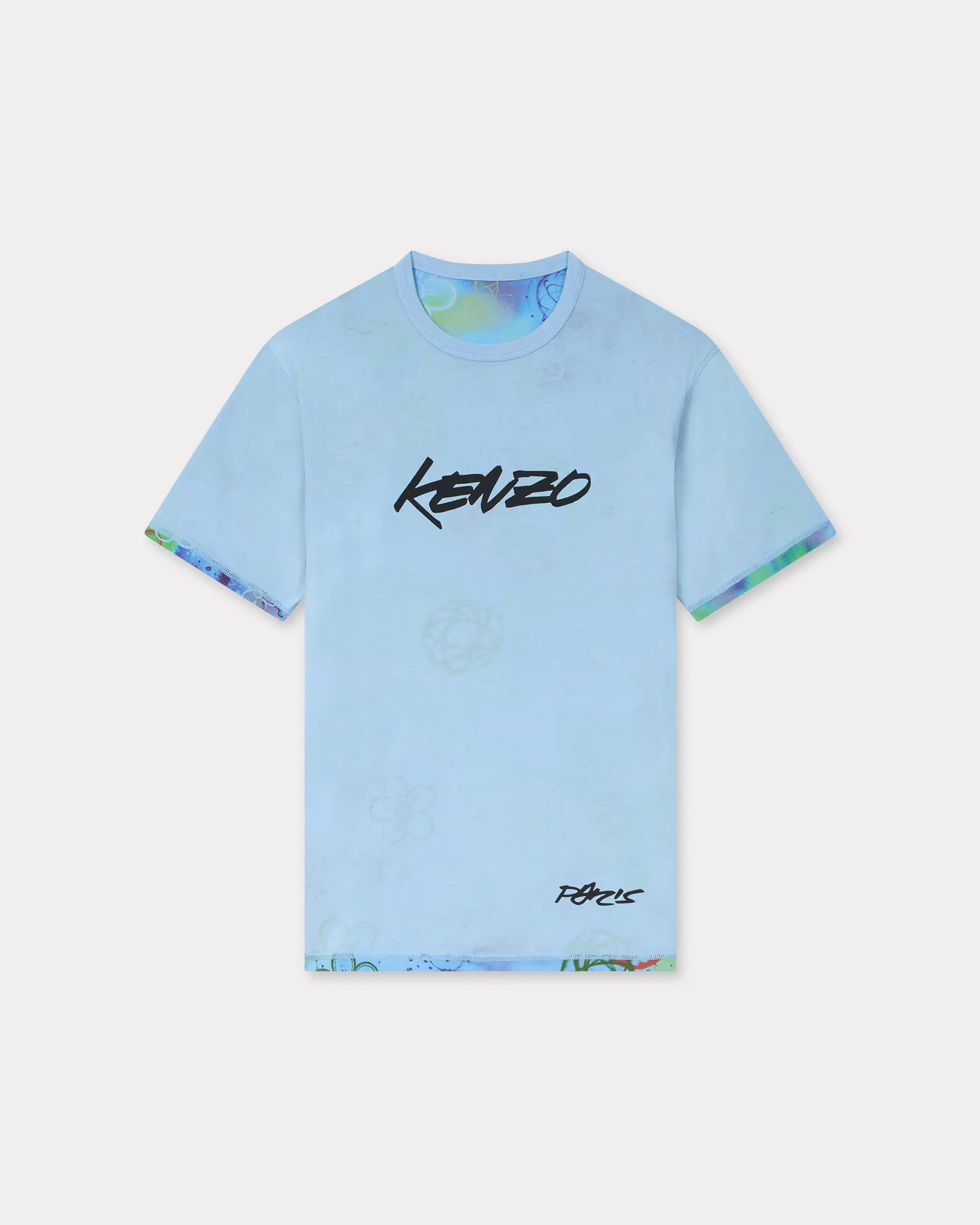 Polera Kenzo Celeste Reversible – Camiseta Doble Vista Estampado Artístico