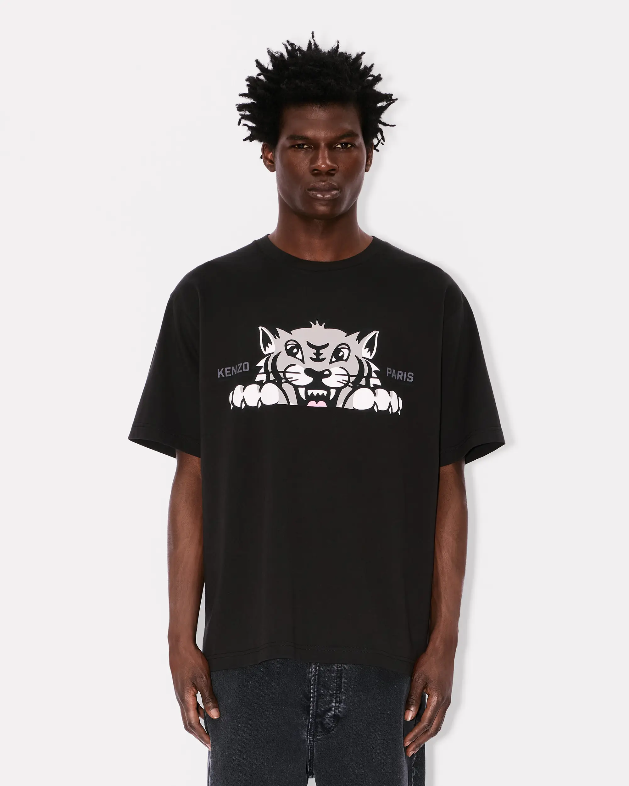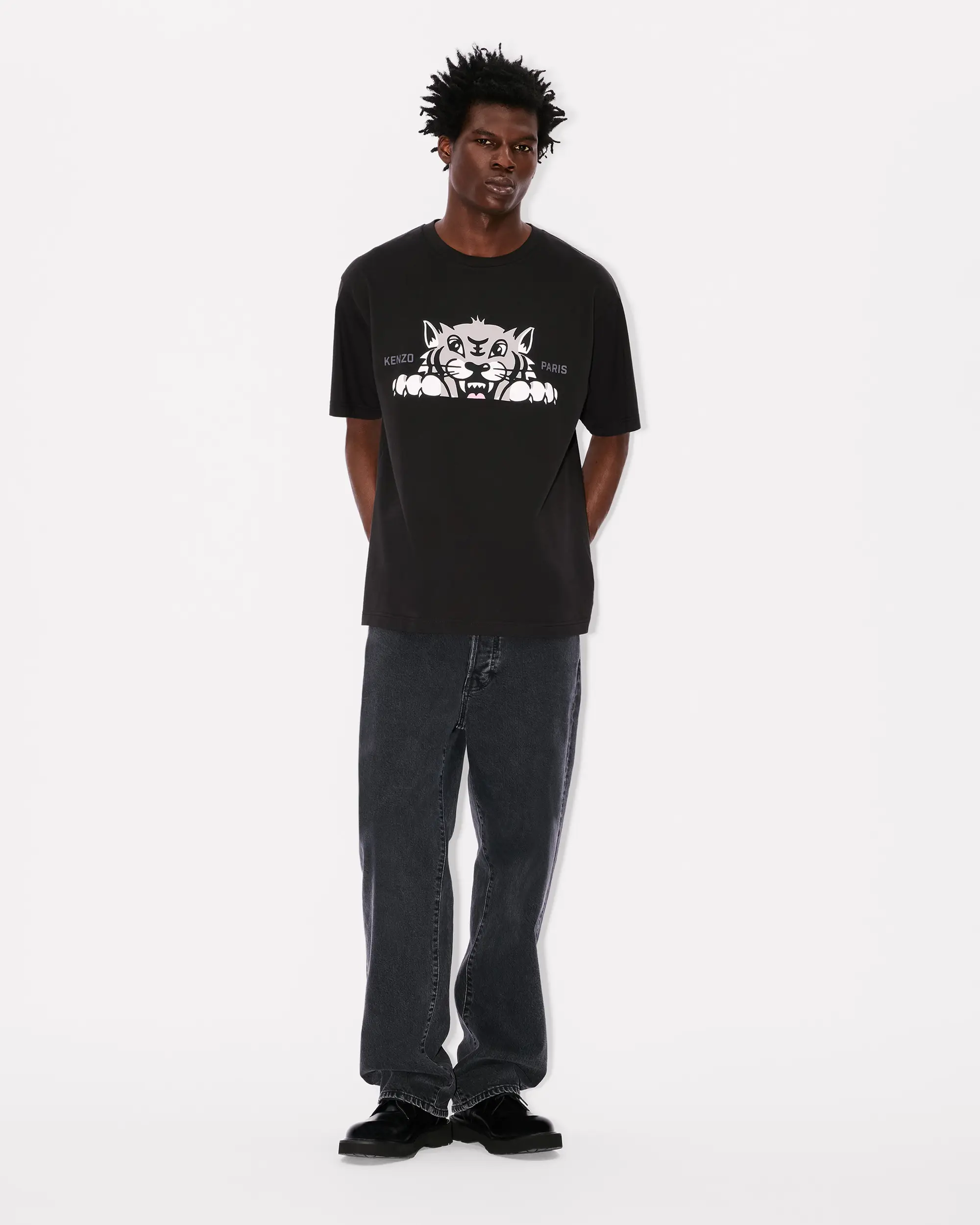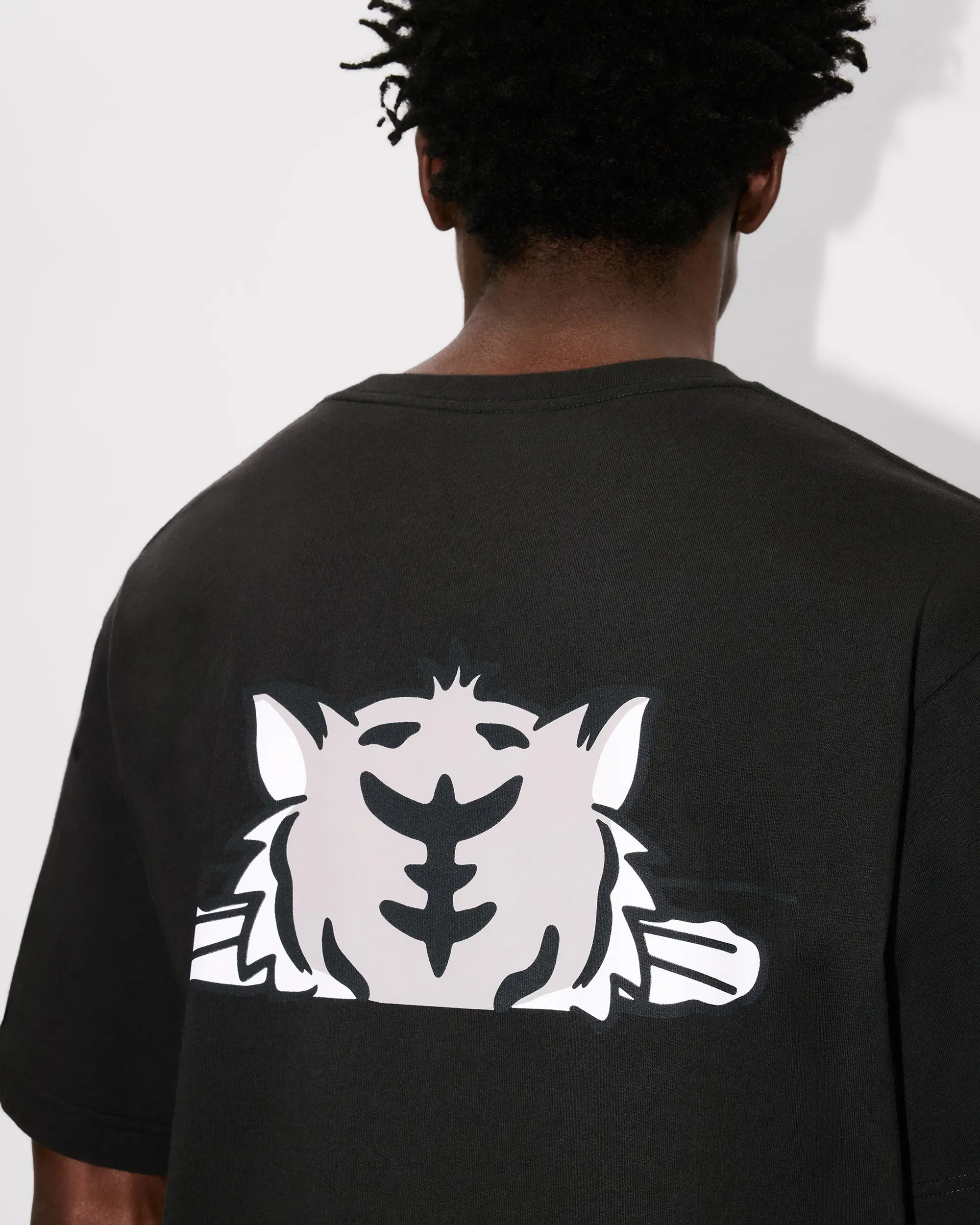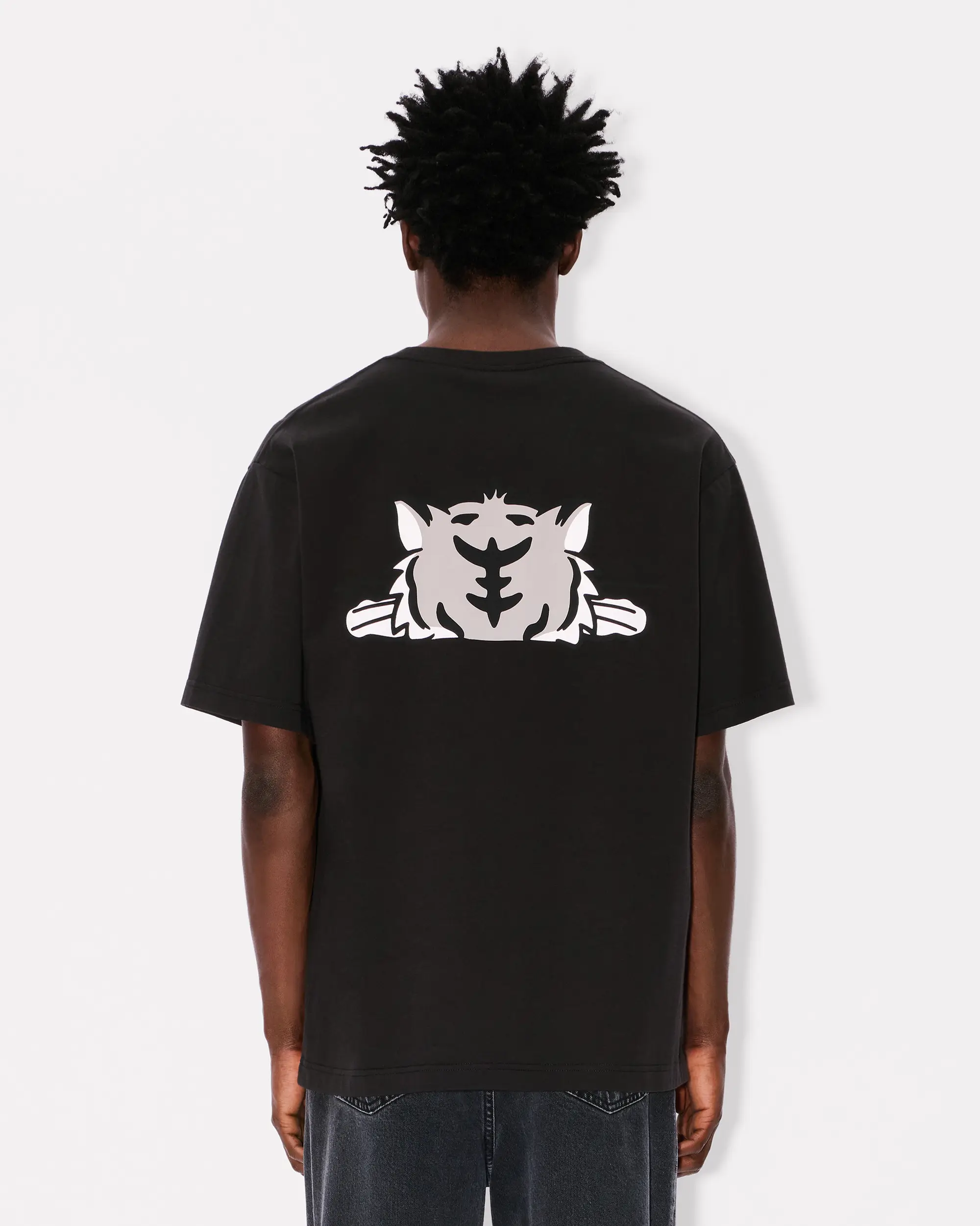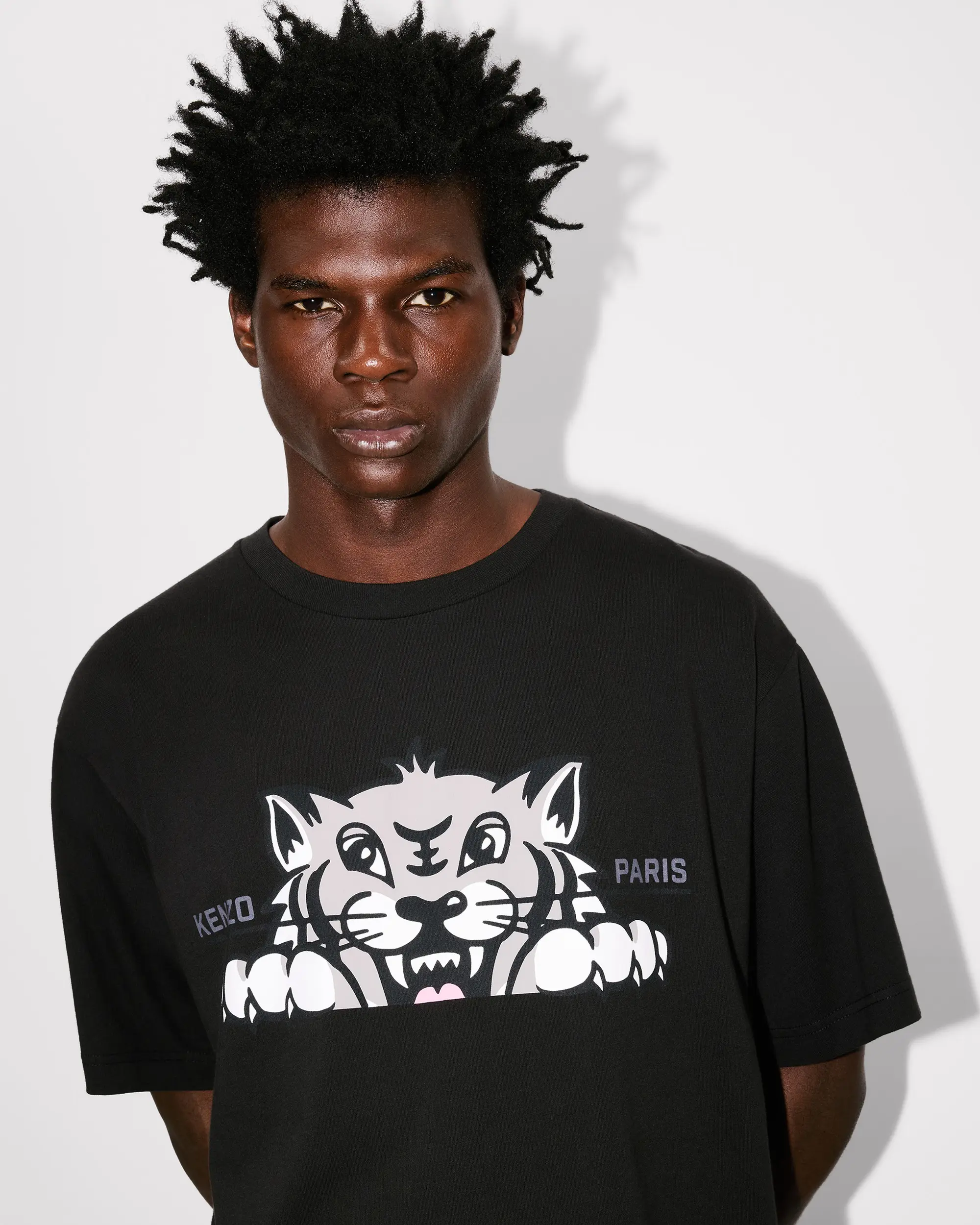 Polera Kenzo Negra de Algodón – Camiseta con Tigre Grande Delante y Detrás