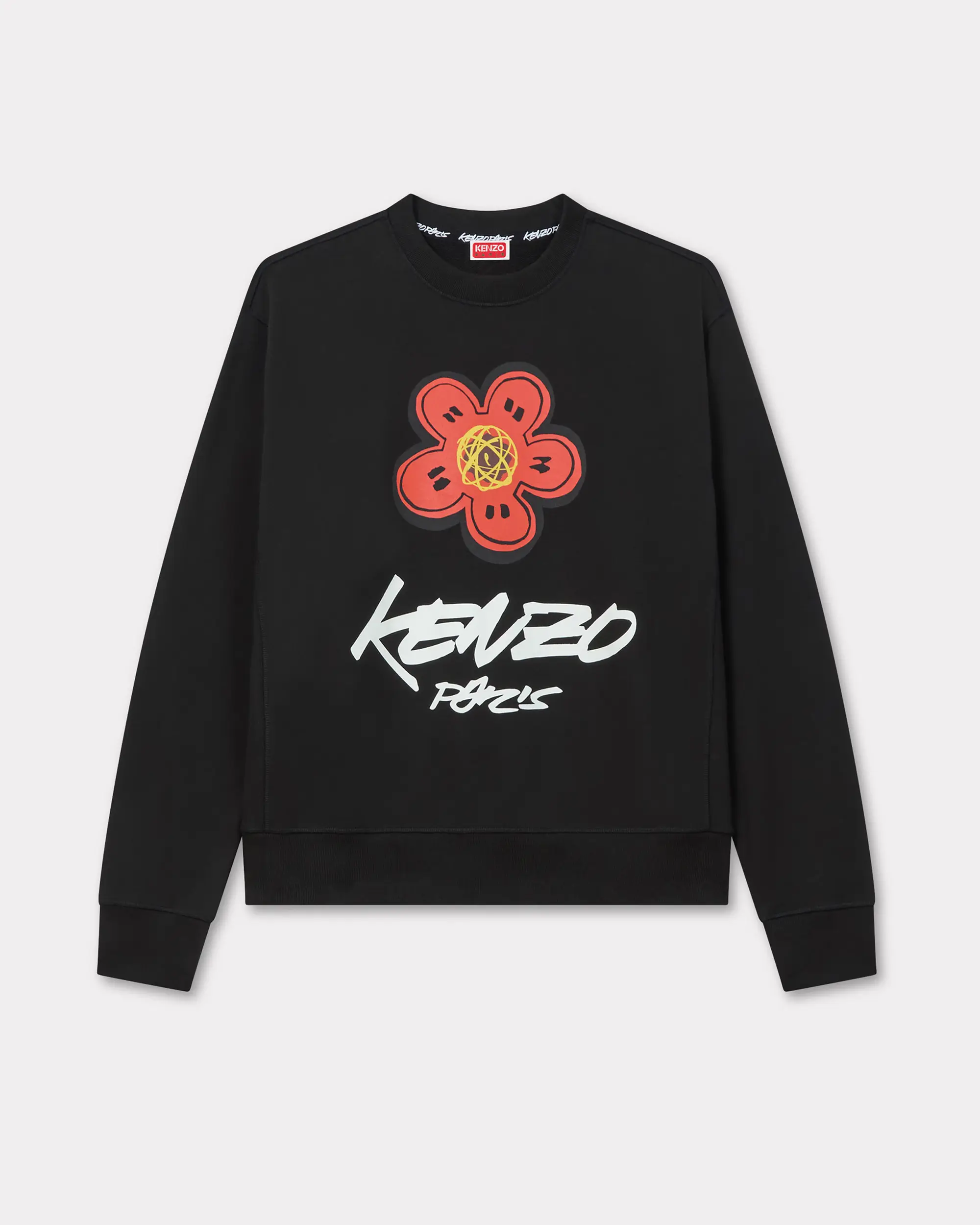 Polerón Kenzo Negro Boke Flower – Sudadera Cuello Redondo con Logo Script