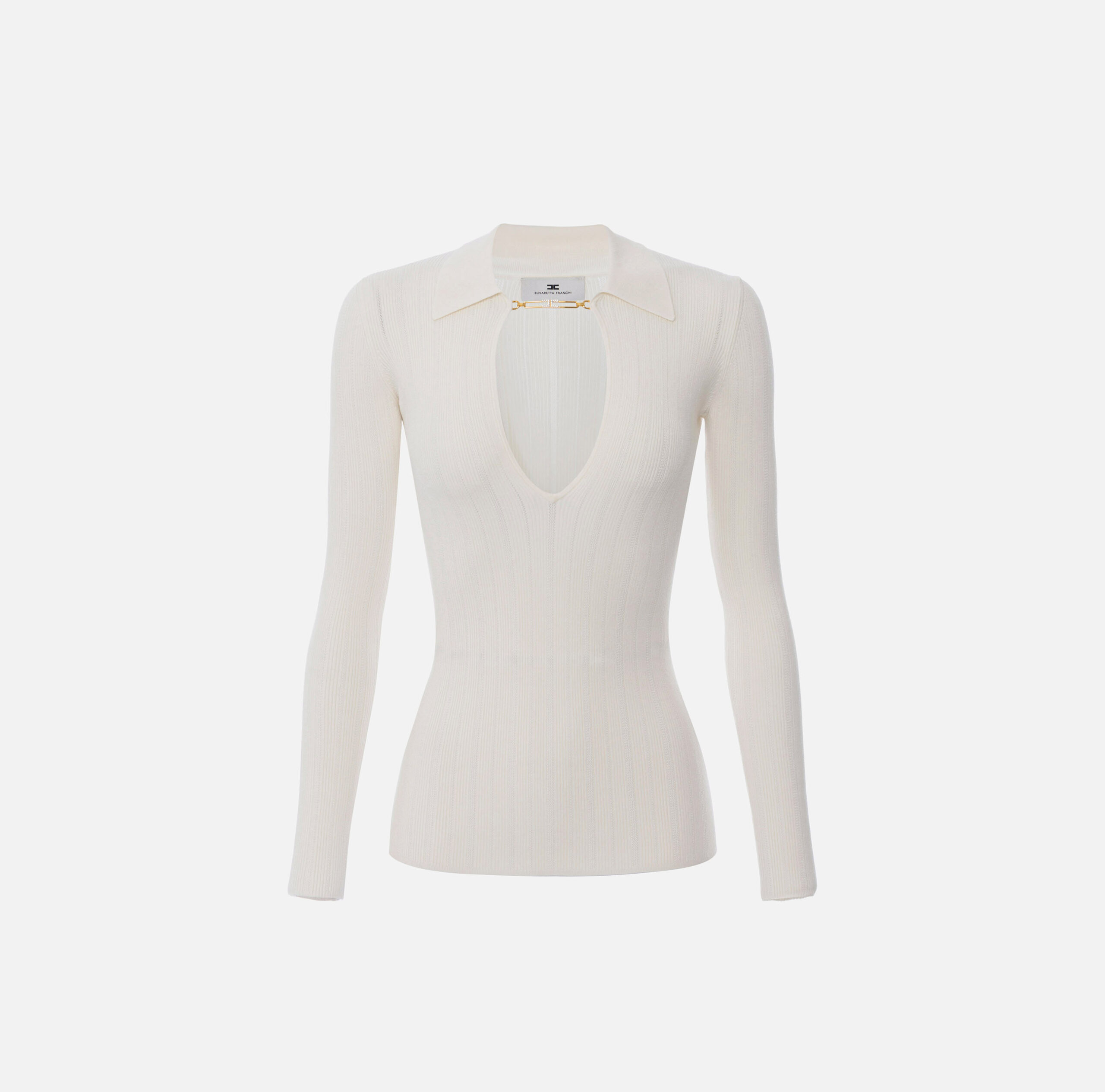 Sweater Elisabetta Franchi Crudo Tejido Entallado con Detalle Metálico