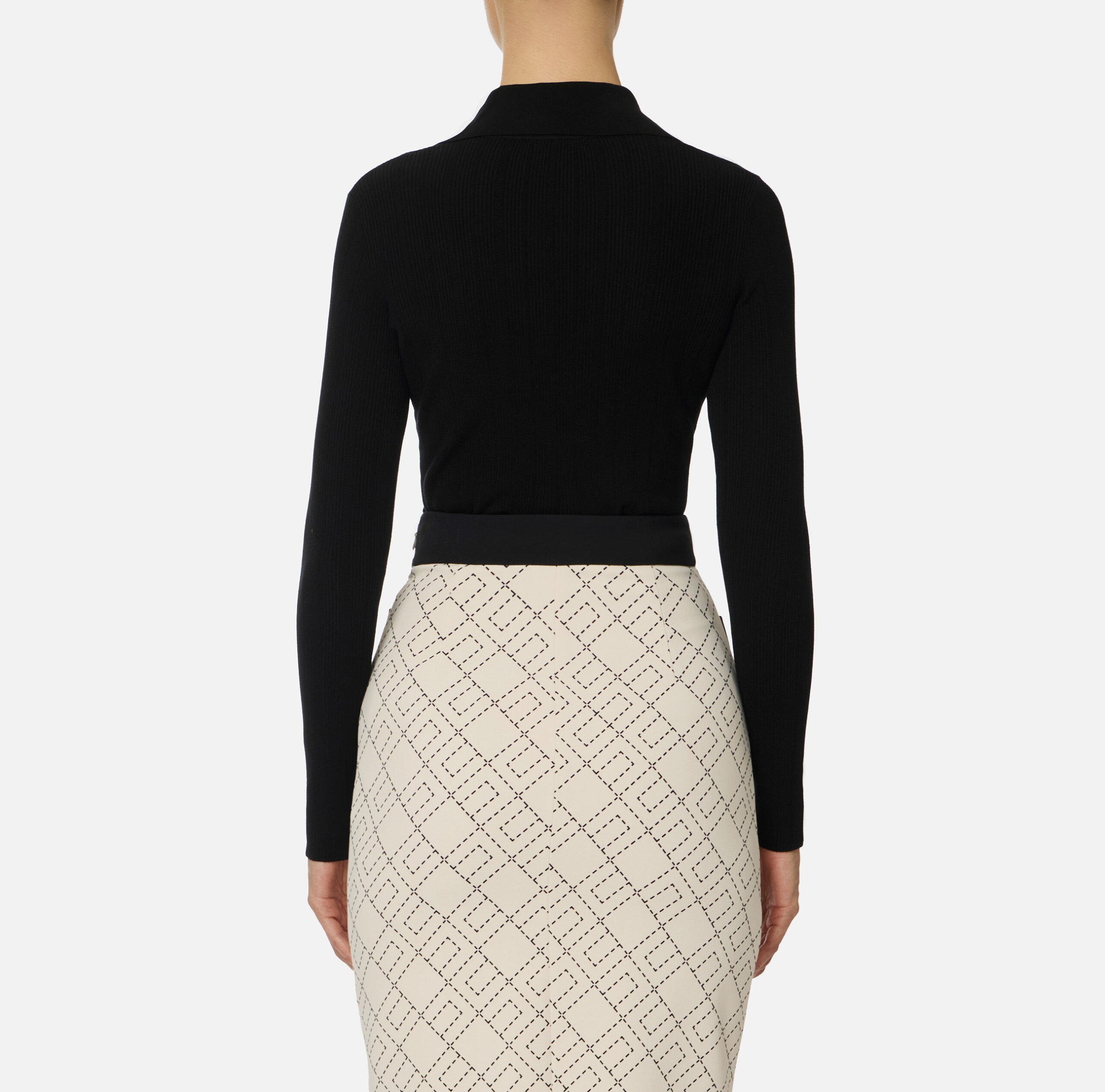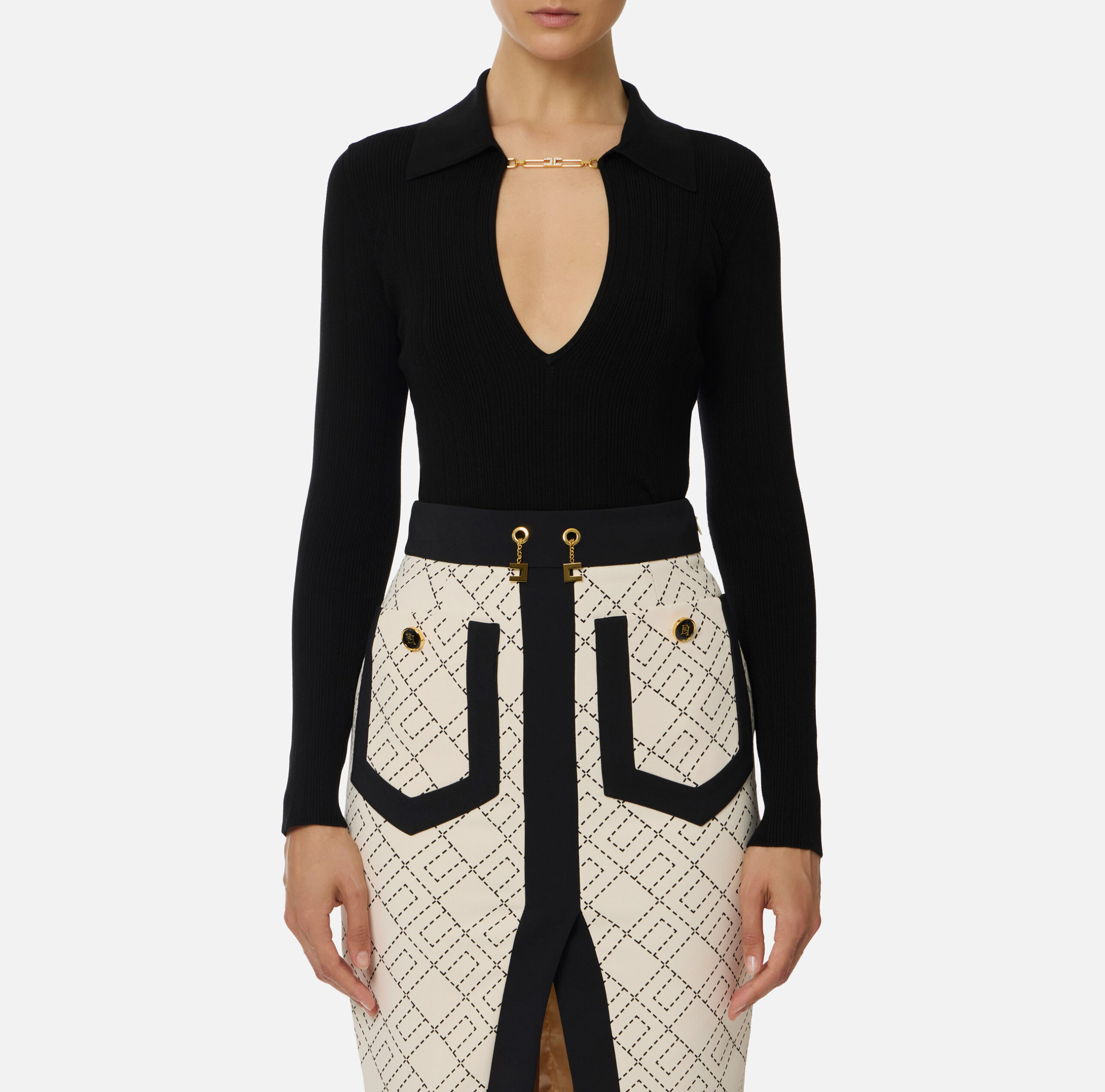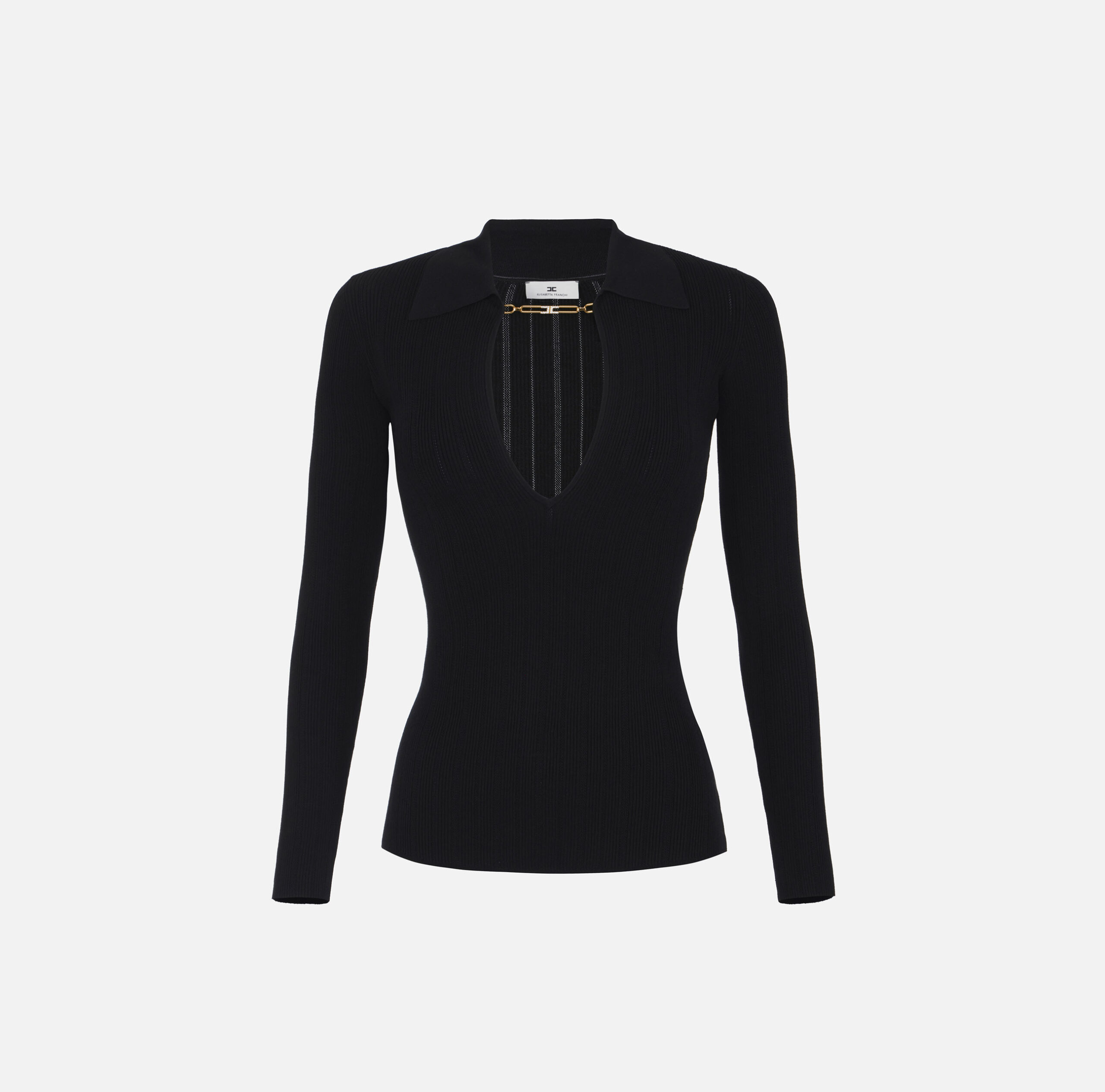 Sweater Elisabetta Franchi Negro Cuello V con Cadena Dorada