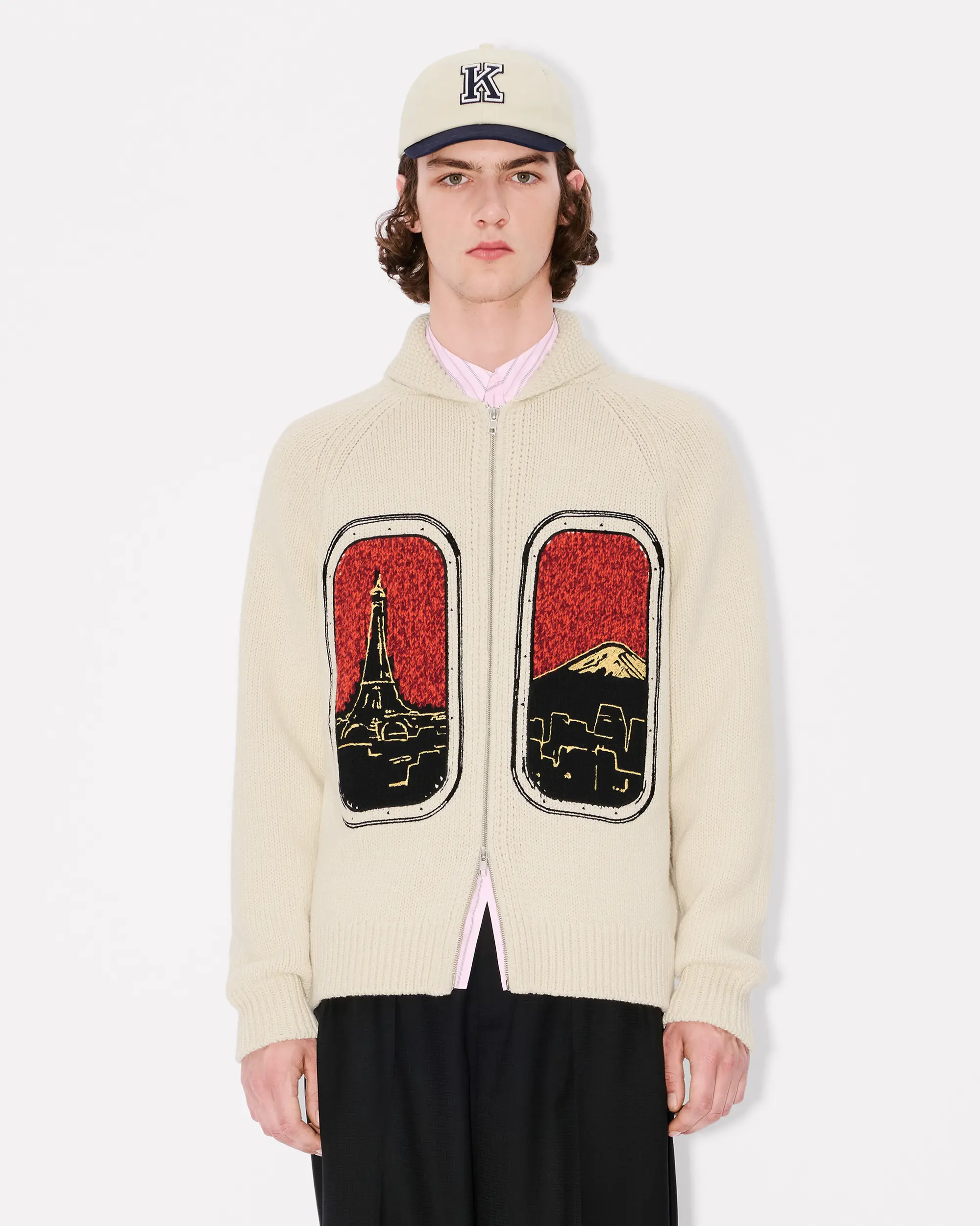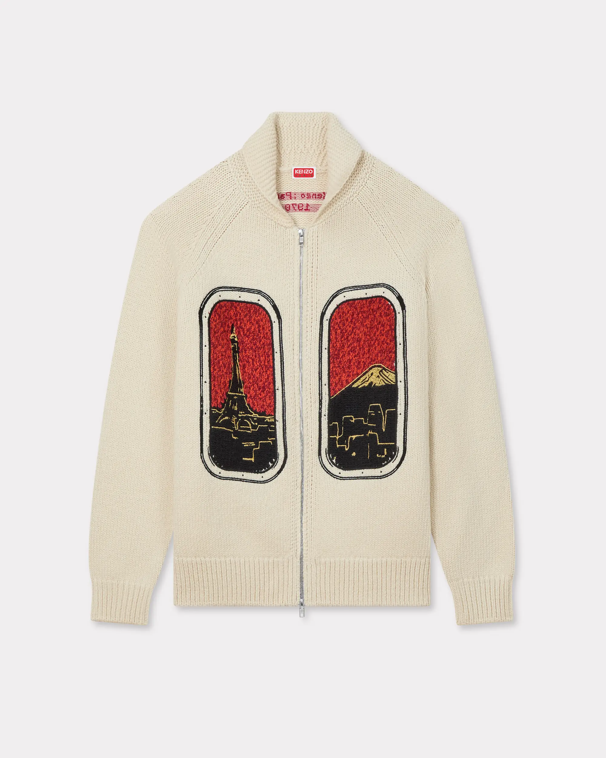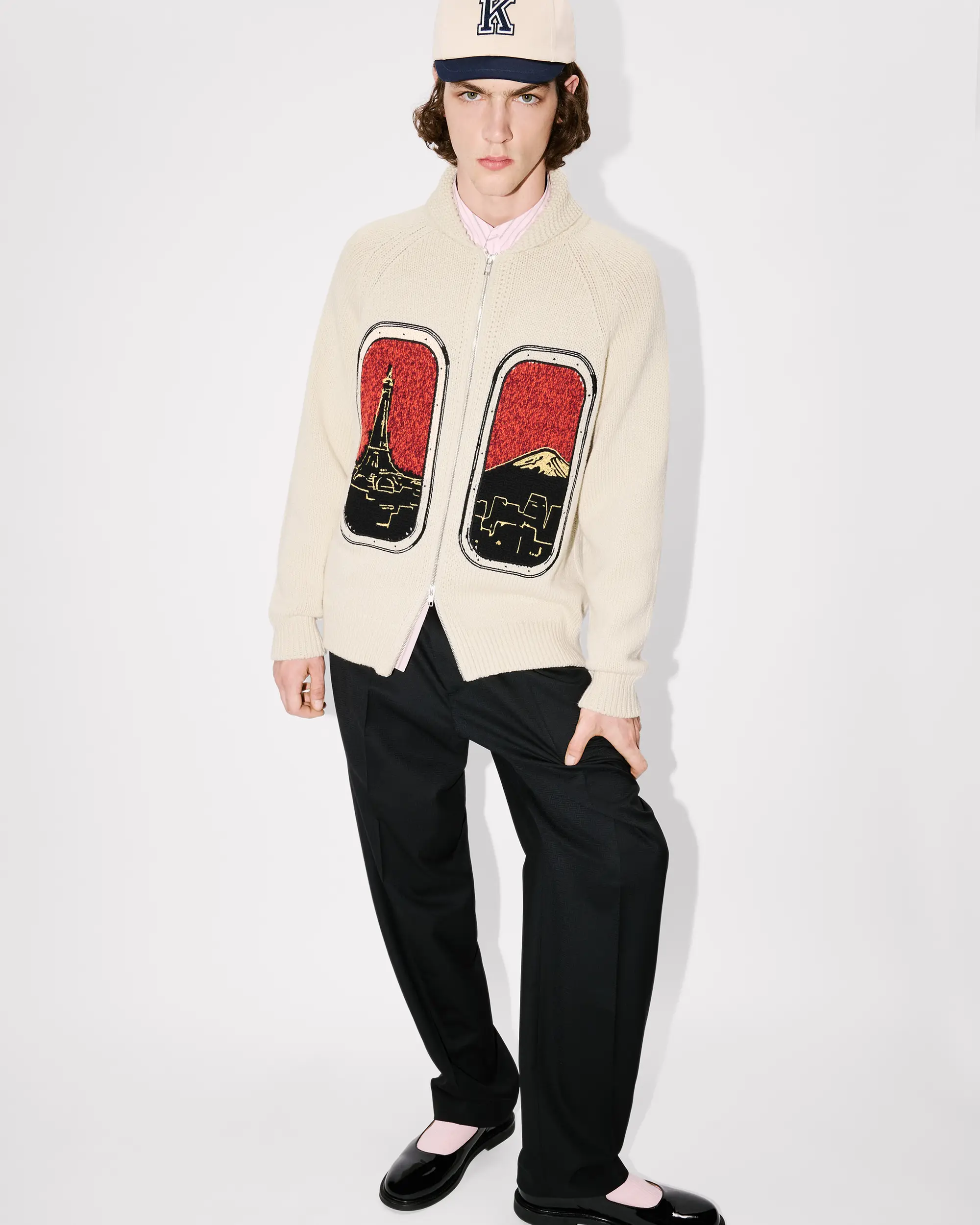 Sweater Kenzo de Lana con Cremallera – Cárdigan Beige Escena Paris-Tokyo