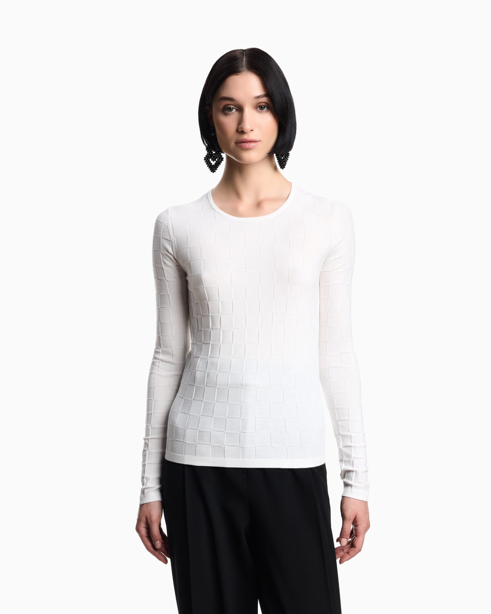Top Blanco Emporio Armani Mujer Manga Larga Textura Minimalista
