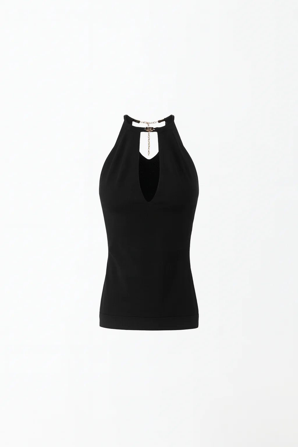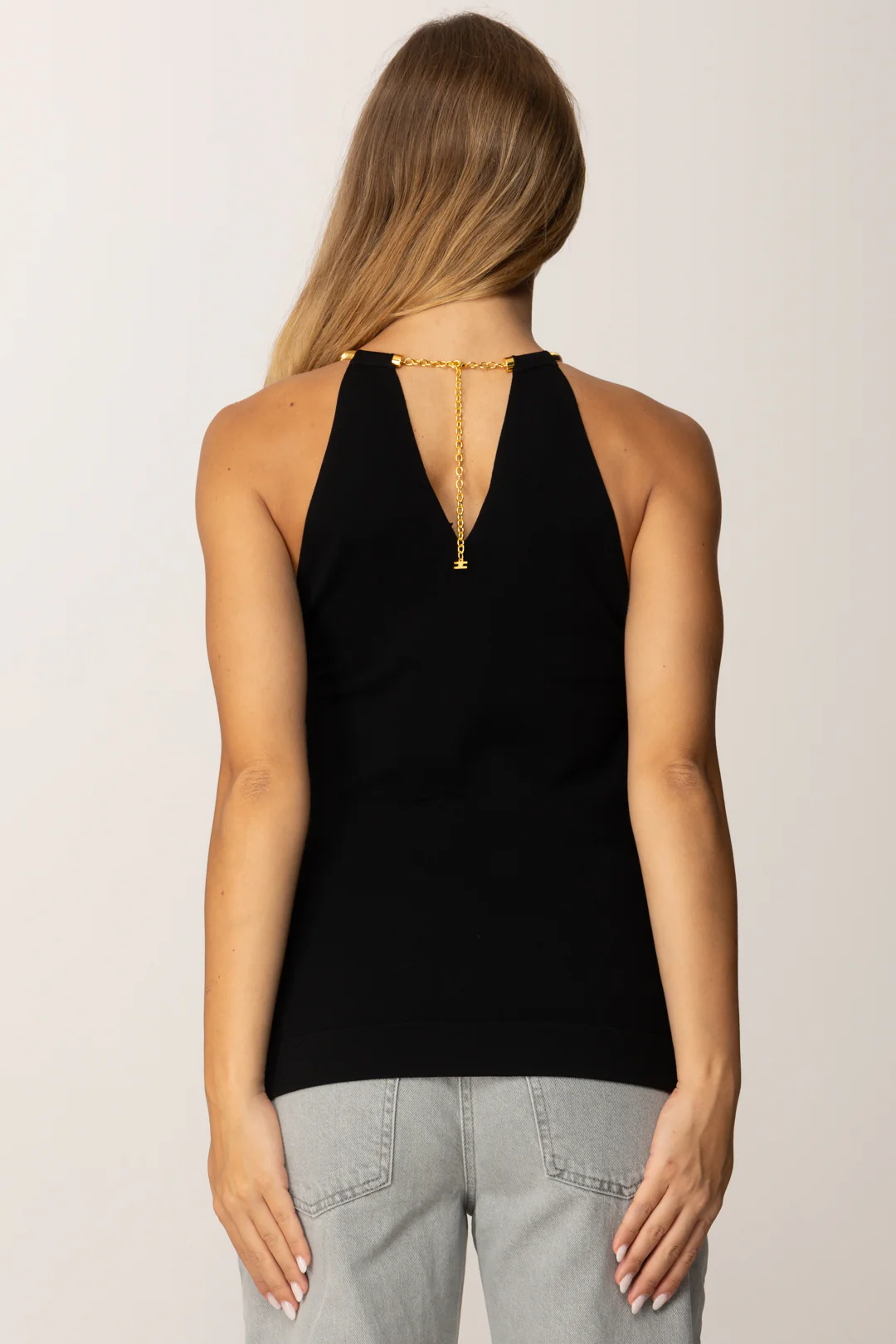 Top Elisabetta Franchi Negro Halter con Detalle Dorado